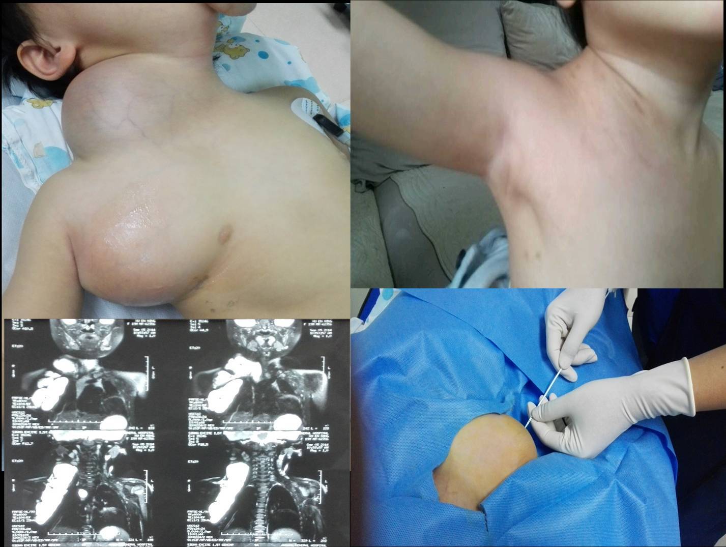 患者需要做必要的实验室检查和其他辅助检查(包括超声、MRI等检查)。疾病符合淋巴管瘤诊断,患者一般情况良好,无畏寒、发热,无咳嗽、流涕等上感症状,无严重心、肝、肾功能障碍及严重凝血功能障碍。