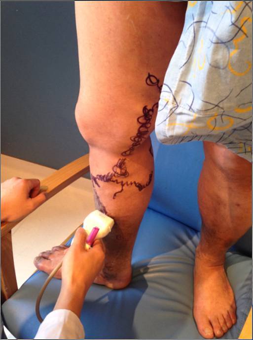 1. 术前由手术医生亲自进行多普勒超声检查。让患者站立位,手术医生要测量大、小隐静脉与深静脉汇合处,及中段和远段的管径,并检测有否血液的反流及反流时间。以此来评估大小隐静脉有否功能不全。