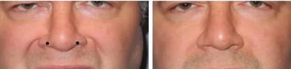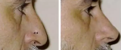 部分人群的鼻尖位置低于鼻背延长线、或鼻唇角小于90°、或鼻小柱较短,在侧面观时,鼻尖呈现向下、向后牵拉的形态,不够美观。除了用手术的方法予以改善之外,对牵拉鼻尖向下的降鼻中隔肌注射肉毒毒素,也能达到一定的改善效果。