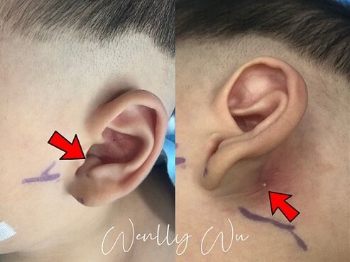 第一鳃裂瘘I型-耳内包块,伴有耳后瘘孔,反复流脓。
