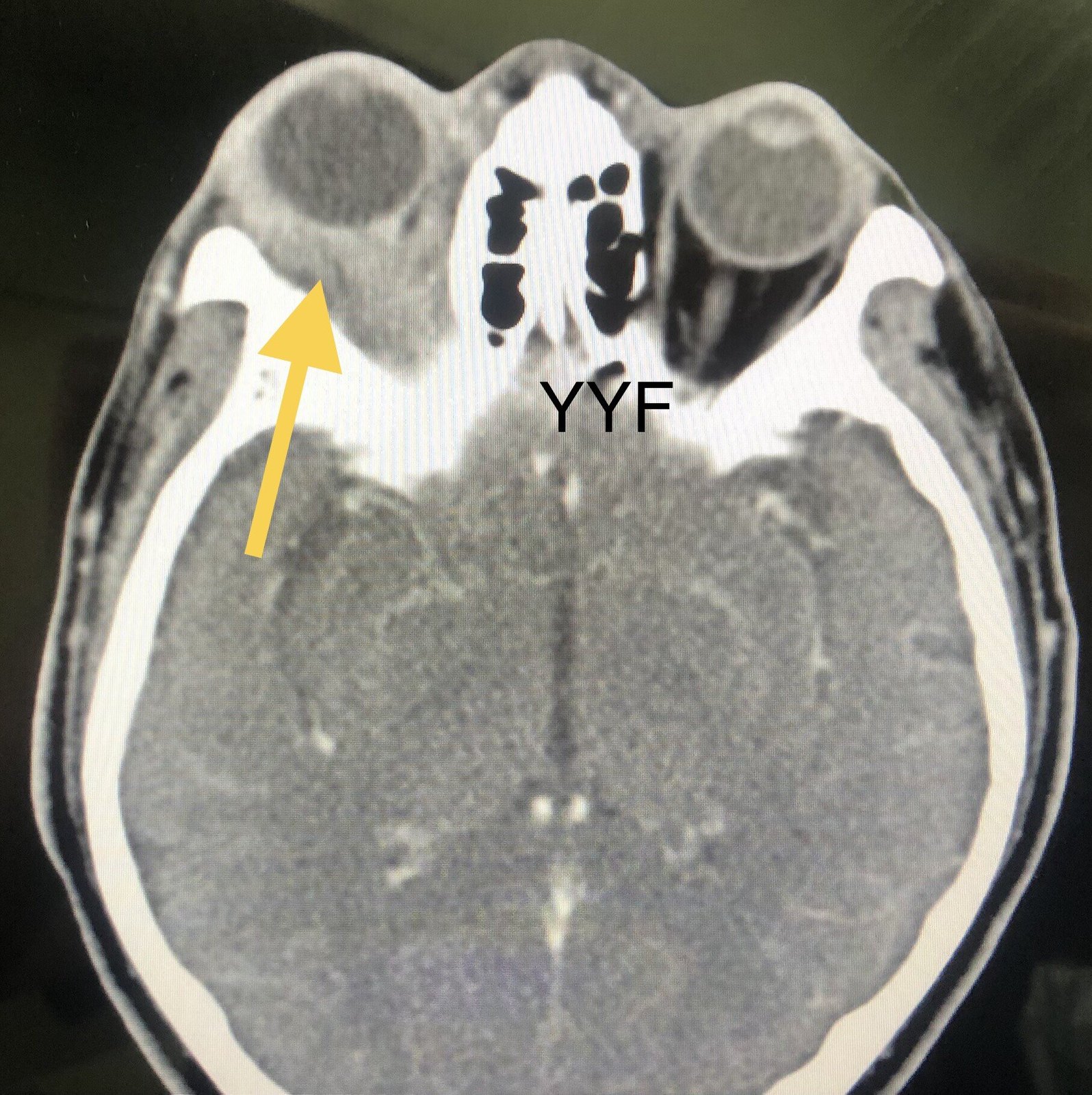 眼眶前段,有包绕眼球生长改变