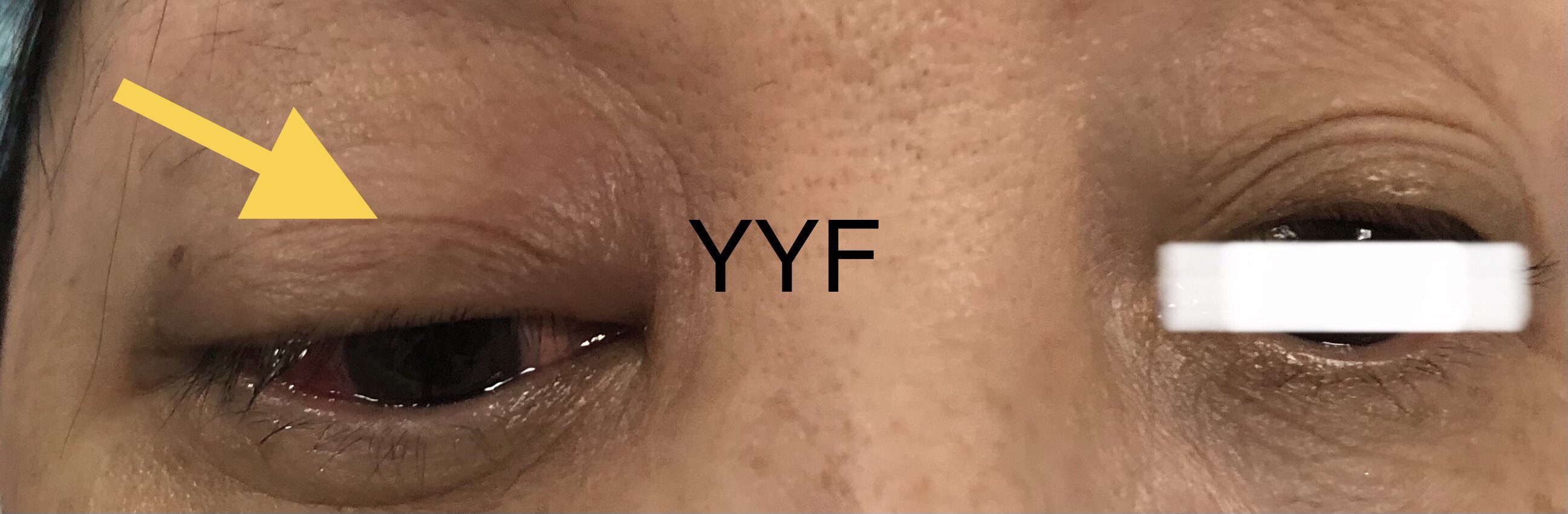 右眼提出,上睑下垂