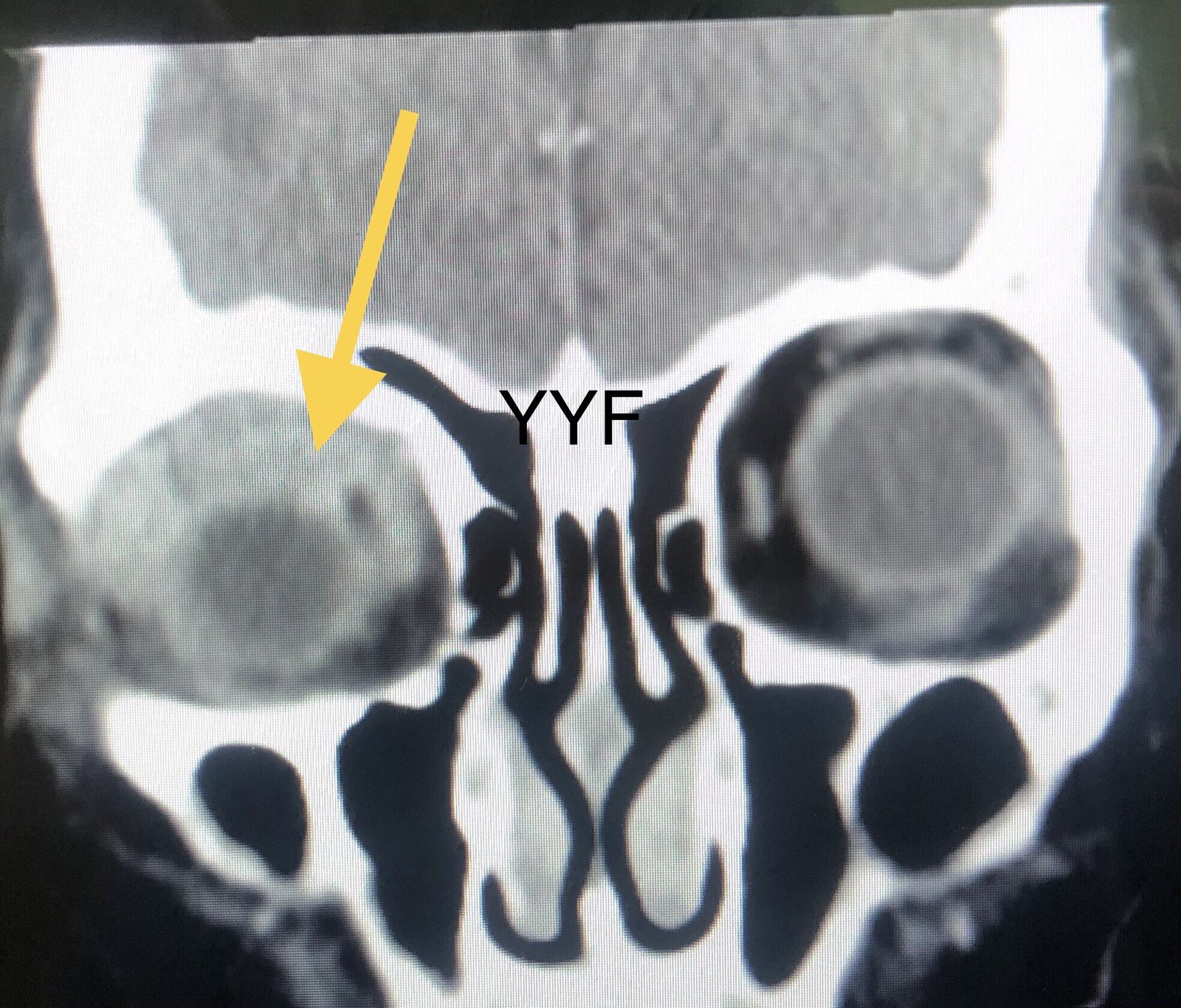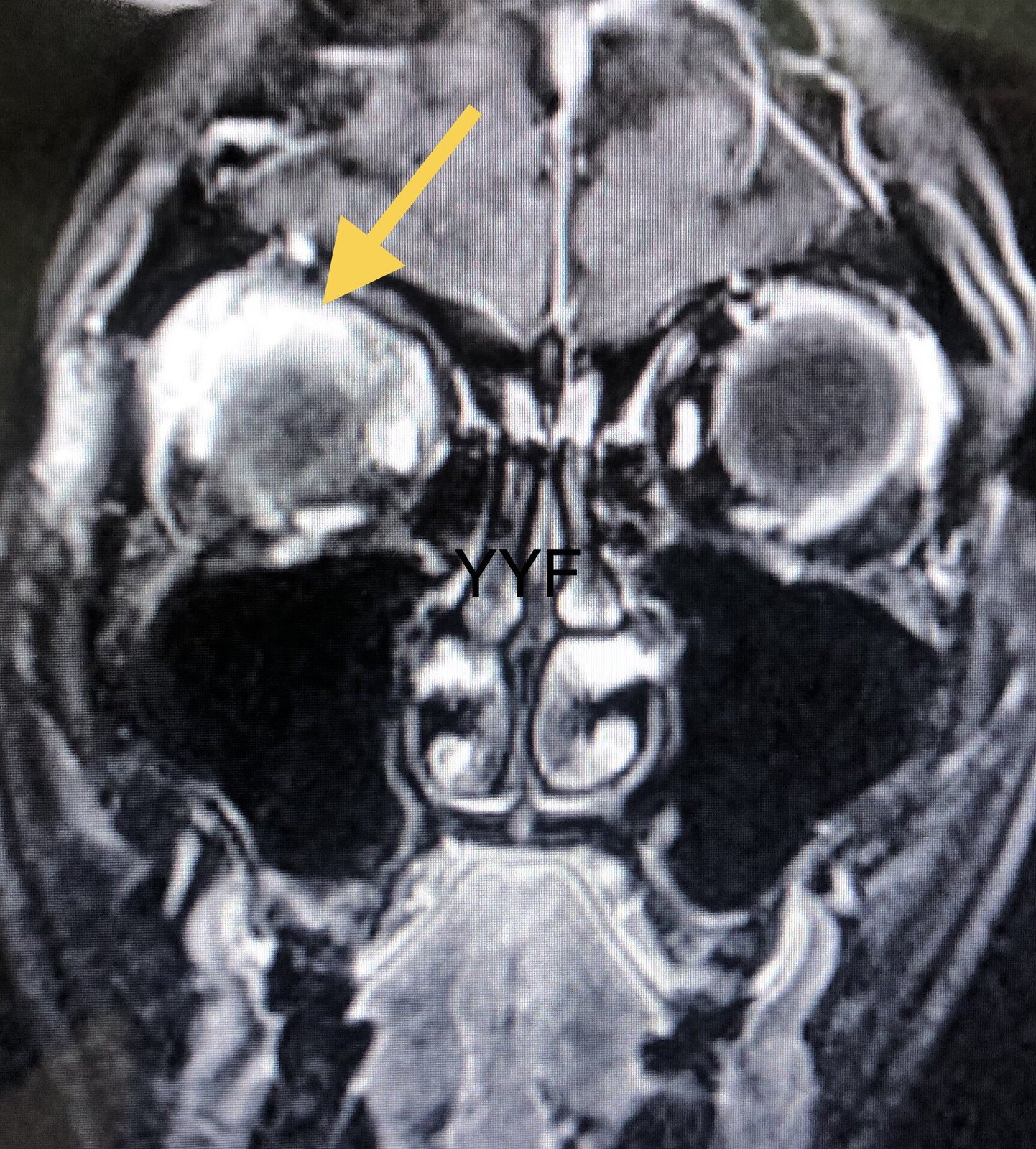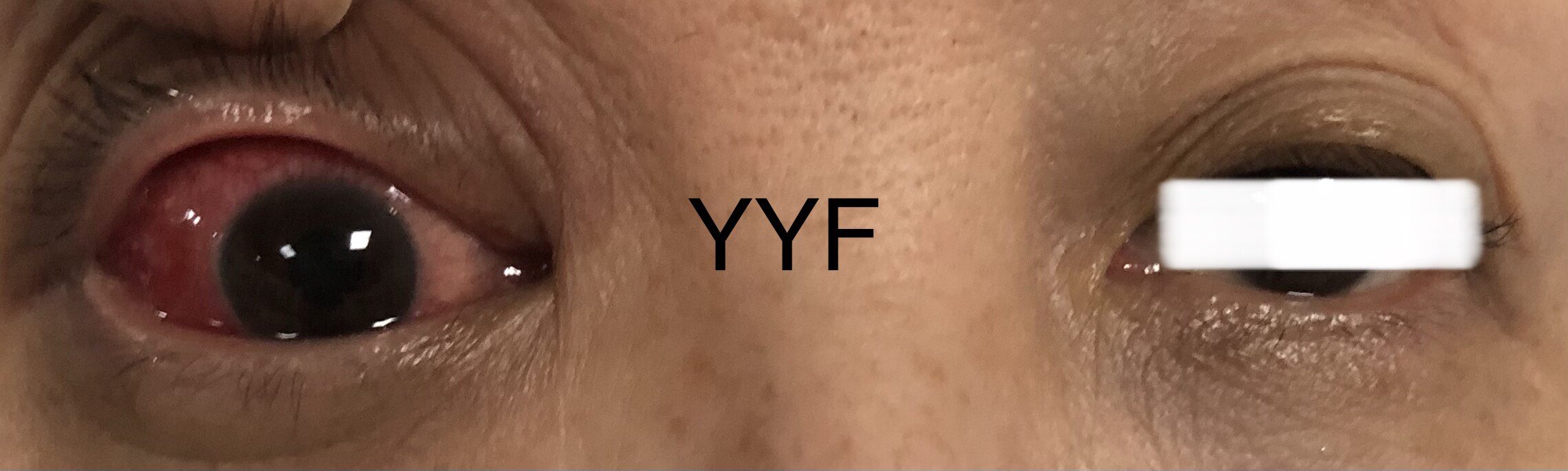 患者中年女性,因眼部肿胀,眼睑下垂,不时充血就医,拍片发现眼眶内弥漫性占位。