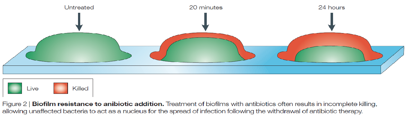 感染时,65%-80%病原体包被在由大分子(多糖蛋白质复合物)组成的复杂生物膜内;