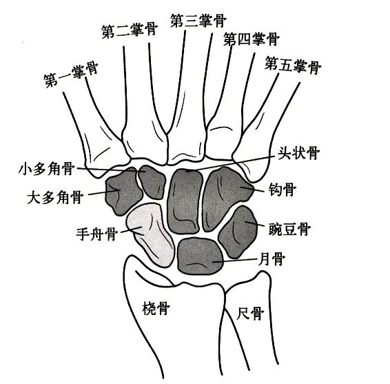 1、舟骨是腕骨中唯一跨越远、近排腕骨的骨骼,在远、近排腕骨之间起到连接杆的作用,所以舟骨腰部在外伤时极易发生骨折。