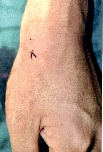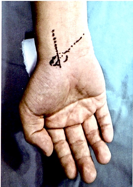 注意切口呈“Z”子形,避免腕掌侧形成索条状疤痕。